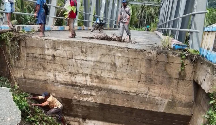 “Saat hujan deras, air sungai meluap deras sekali. Tidak lama kemudian bagian tengah jembatan langsung roboh,” kata Au, warga Desa Damuli yang menyaksikan kejadian itu.